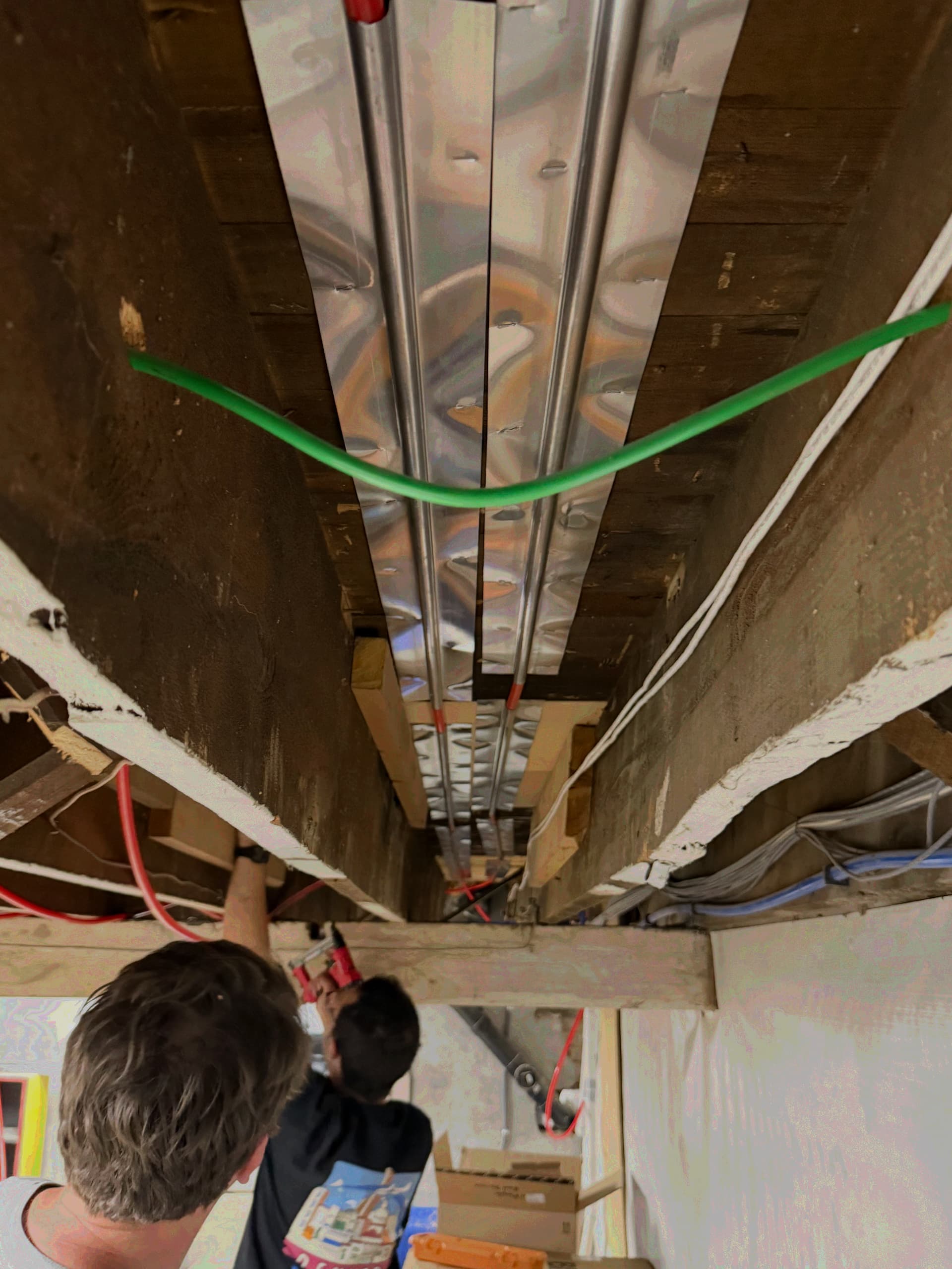 Mixing Valve. We requested a mixing valve to blend the hot zone supply and cold zone return (essentially configuring how much water goes to the miner to be heated). This will help us ensure we don’t overheat the floor boards with excessively hot water from the miner. Our plumbers accidentally installed the mixing valve in the wrong place, mixing the return temp the the boiler. They didn’t understand why we’d want to mix out of the boiler. Good to know.